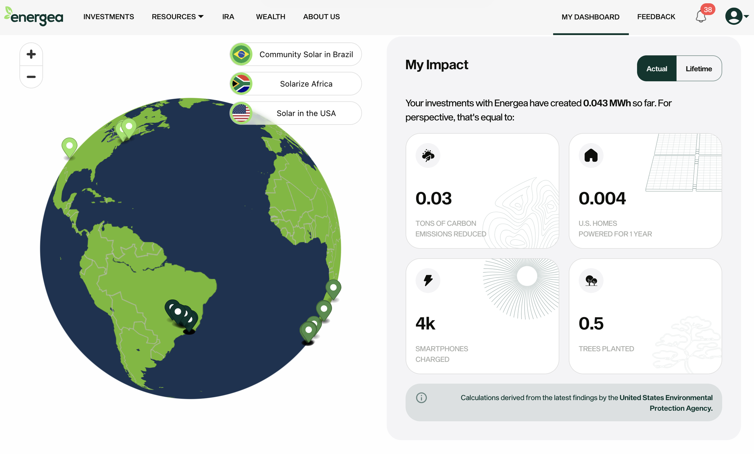 I signed up for Energea to get dividends from investing in renewable energy developments. I only invested a small amount so I could track how it works. I’ve earned an average of 10% on my investment over a 7 month period and even more importantly I supported investments in solar projects globally. For signing up at Energea on you get $50, to be invested in Community Solar in Brazil portfolio