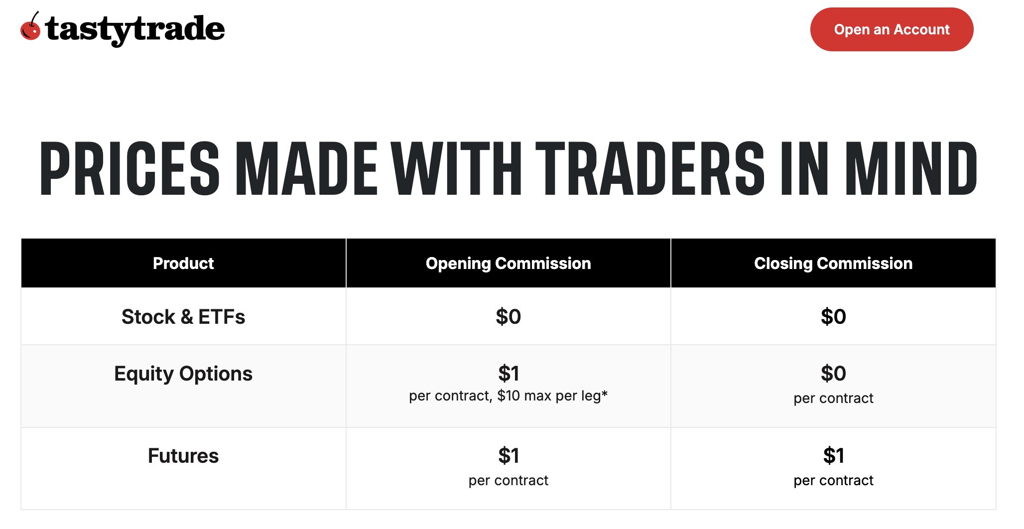 Most brokers charge a flat fee per options contract, such as $0.65 per contract. But tastytrade charges $1 to open and $0 to close. Essentially, this breaks down to $0.50 per contract since you're only paying that $1 fee once, whereas with other brokers, you have to pay the $0.65 fee on each side. With tools like customizable options chains, advanced multileg strategy builders, and integrated metrics such as probability of profit (POP) and net Greeks, the platform supports traders at every level.